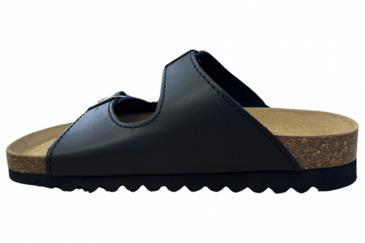 Embla, en klassisk tvåremmars damsandal med bred läst i skinn med fodring av cambrelletyg. Korkfotbädd med anatomisk uppbyggnad med stöd för hålfoten. Fotbädden är skinnklädd med ett mjukt sviktlager överst för bästa komfort. Yttersula i gummi för bra grepp. Fungerar både för inne och utebruk.