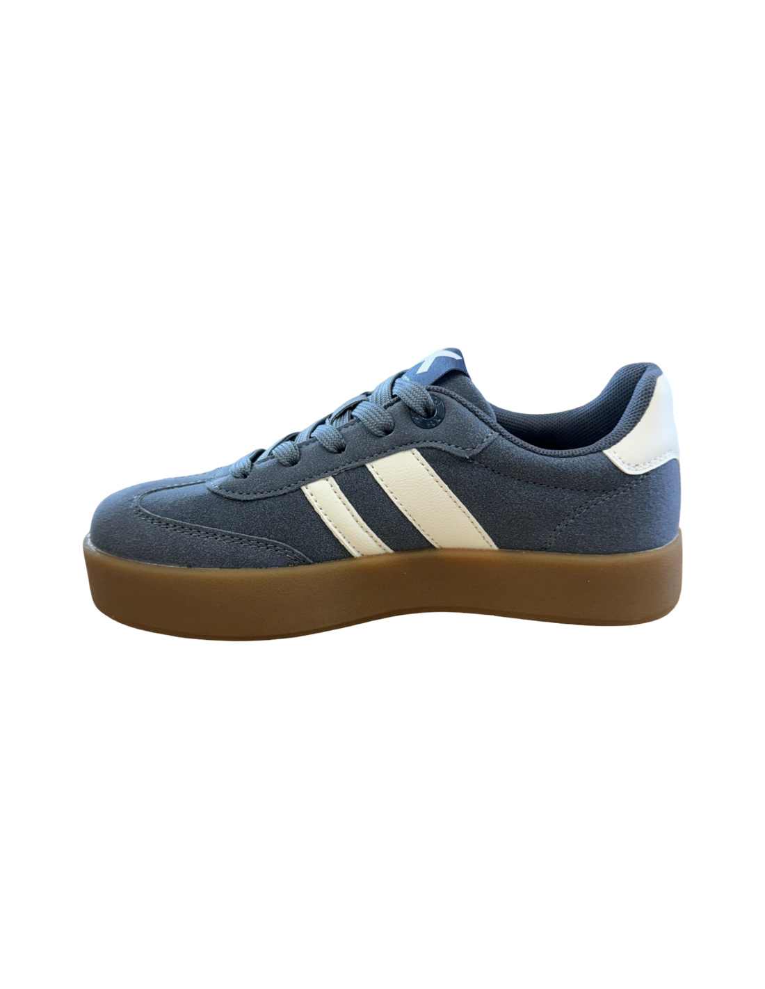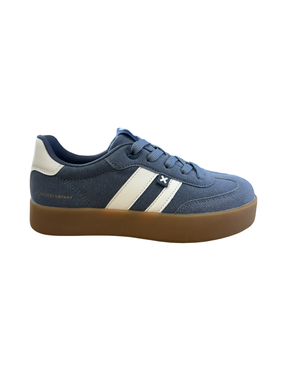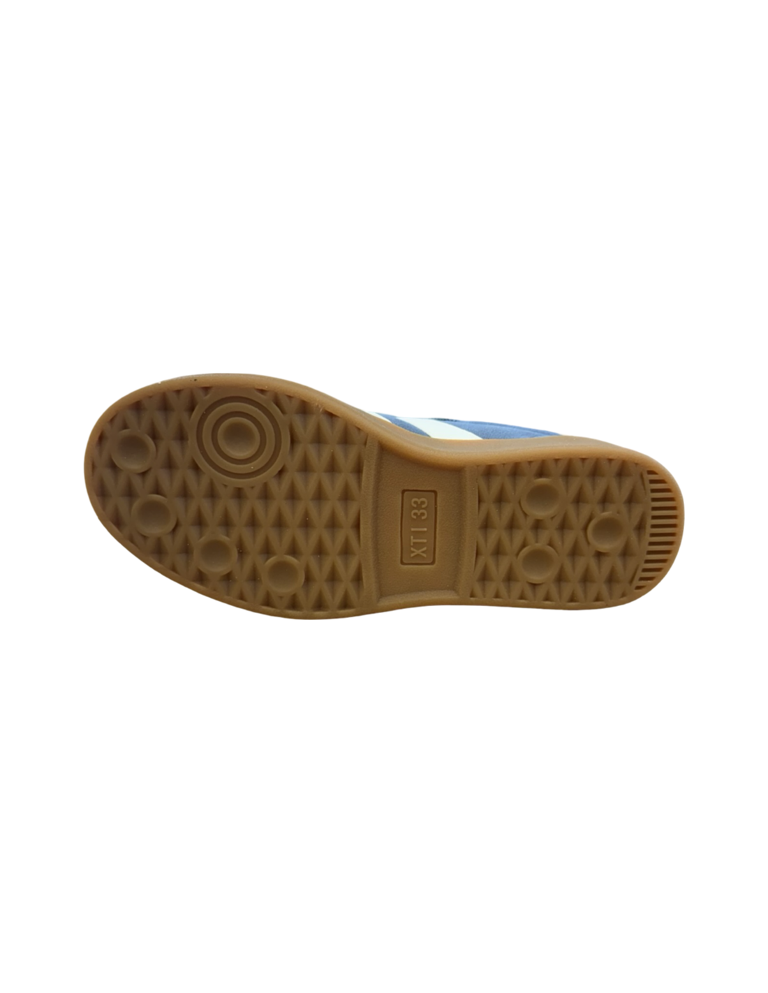 Xti, en snygg sneakers i jeansblå textil med en mjuk och löstagbar innersula för ev. egna fotbäddar. Den har en sula som är ca. 2,5cm hög och är i ett mjukt gummi som ger ett bra grepp. Skon är normal i storlek. Barn/junior Unisex. Tänk på att måtten nedan är riktlinjer och kan diffa någon millimeter.