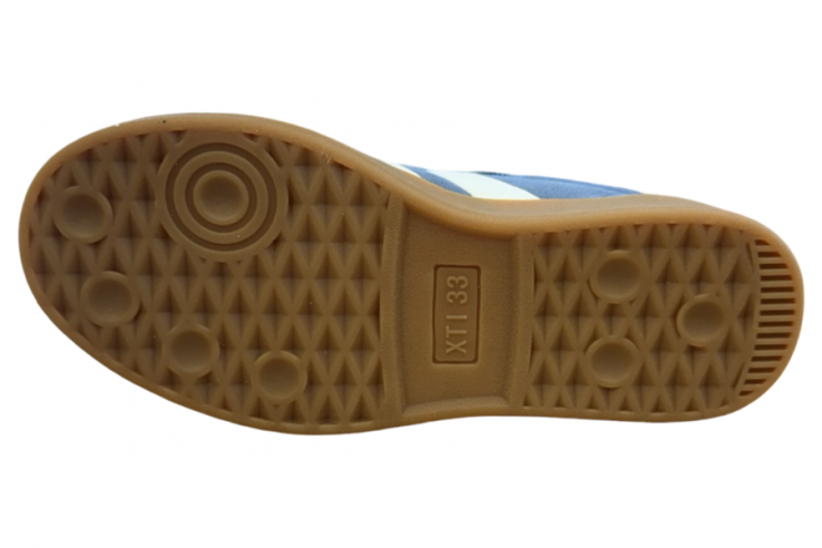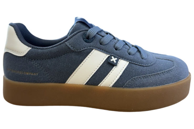Xti, en snygg sneakers i jeansblå textil med en mjuk och löstagbar innersula för ev. egna fotbäddar. Den har en sula som är ca. 2,5cm hög och är i ett mjukt gummi som ger ett bra grepp. Skon är normal i storlek. Barn/junior Unisex. Tänk på att måtten nedan är riktlinjer och kan diffa någon millimeter.