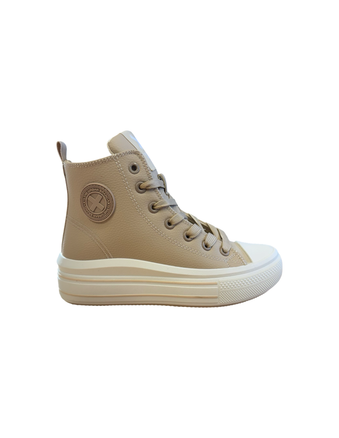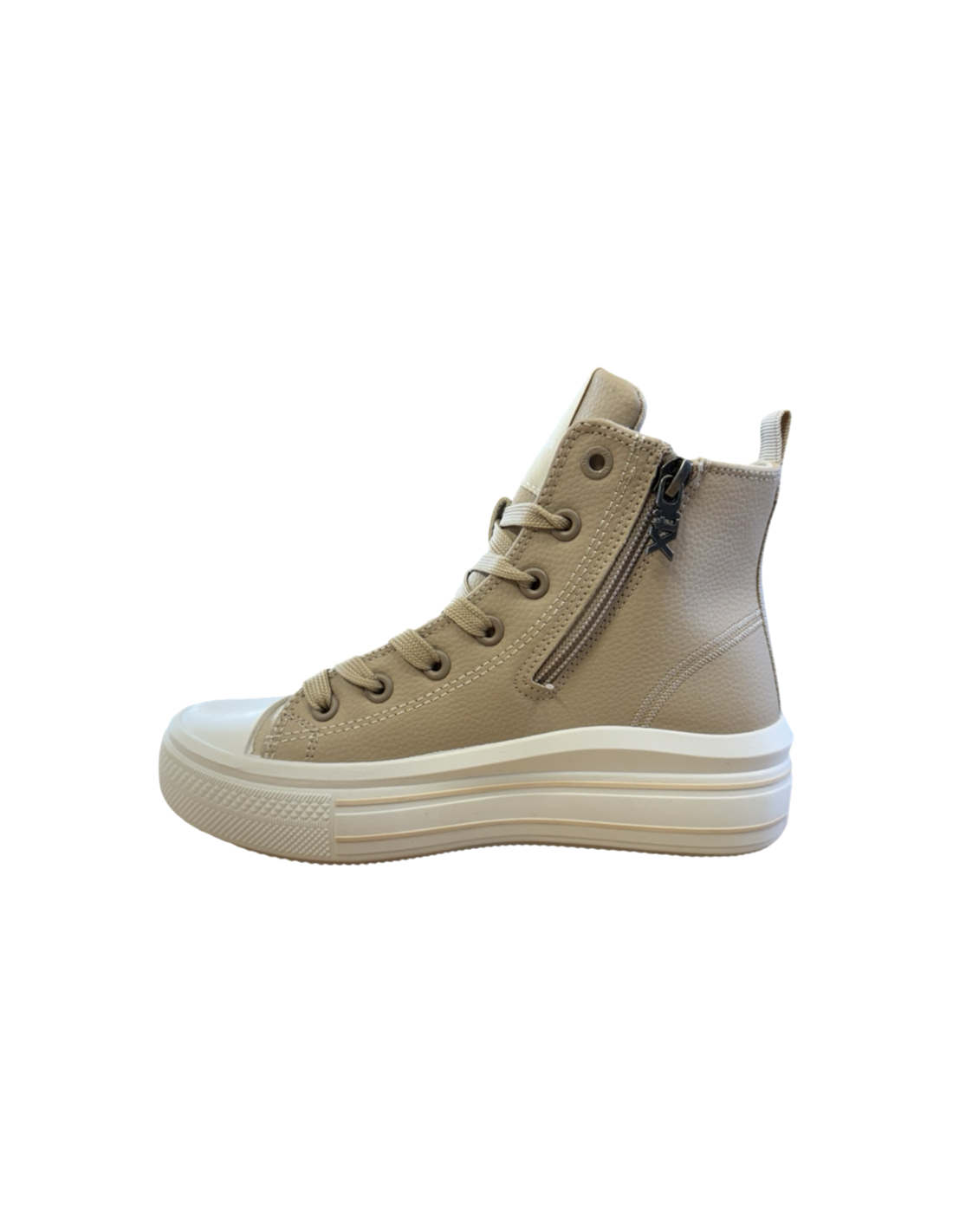 Xti, en tuff sneakers med skaft, knytning och dragkedja. Skon är i syntet med och är ofodrad för att användas höst och vår och den är en aning liten i storlek då den smalnar av lite fram. Löstagbar innersula för ev. egna fotbäddar. Tänk på att måtten nedan är riktlinjer och kan diffa någon millimeter.