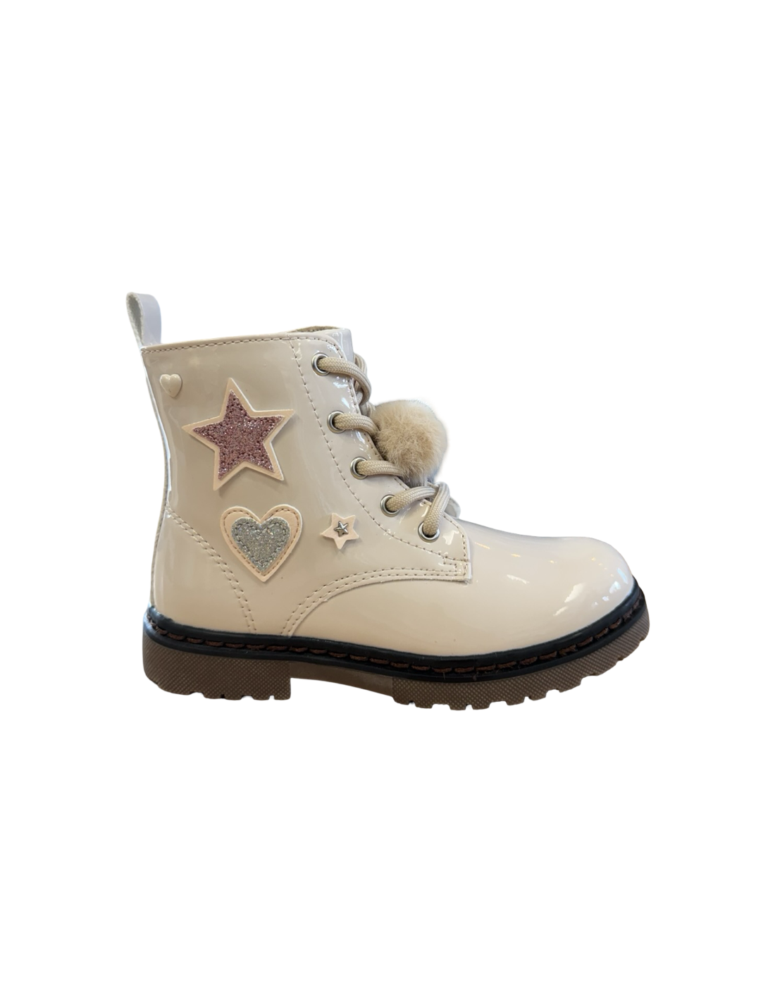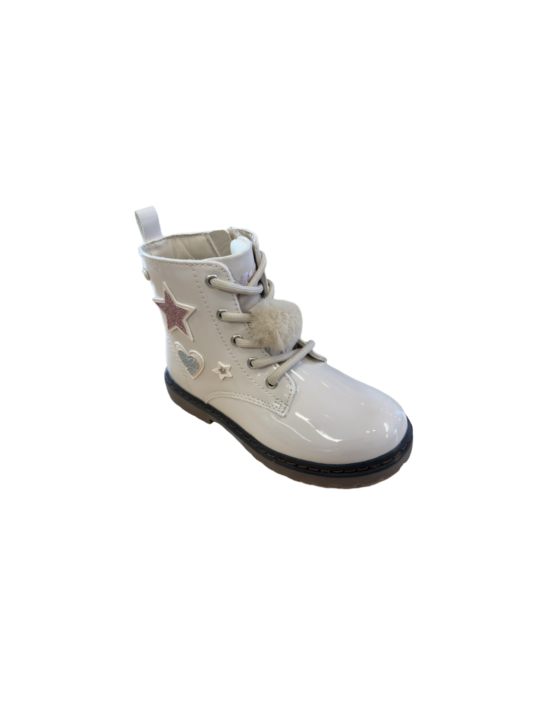 Xti, en supersöt ofodrad känga i syntet&lack till barn med knytning och dragkedja för höst och vår användning. En gummisula med bra grepp. Tänk på att måtten nedan är riktlinjer och kan diffa någon millimeter.