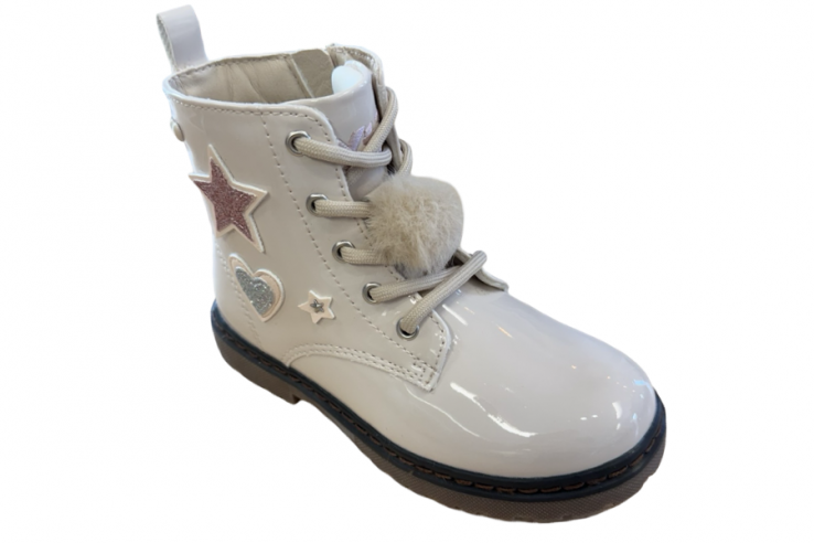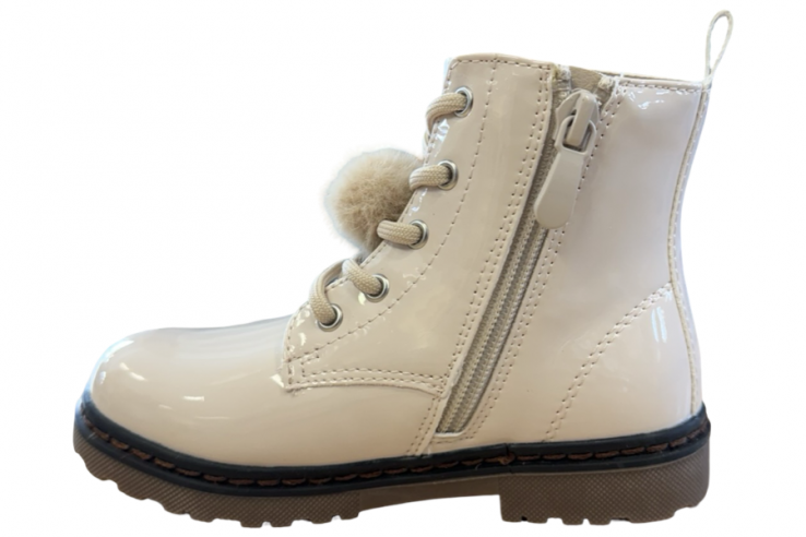 Xti, en supersöt ofodrad känga i syntet&lack till barn med knytning och dragkedja för höst och vår användning. En gummisula med bra grepp. Tänk på att måtten nedan är riktlinjer och kan diffa någon millimeter.