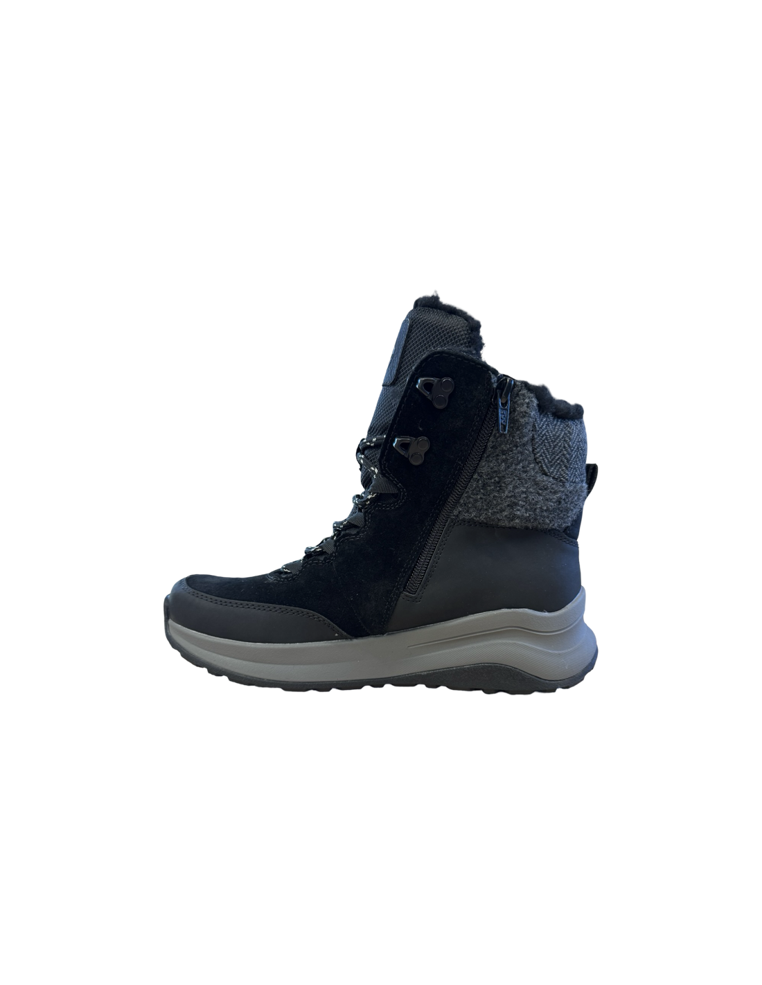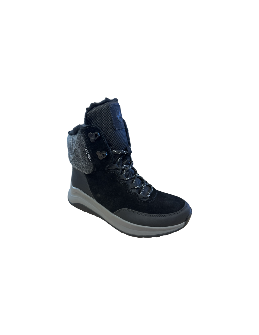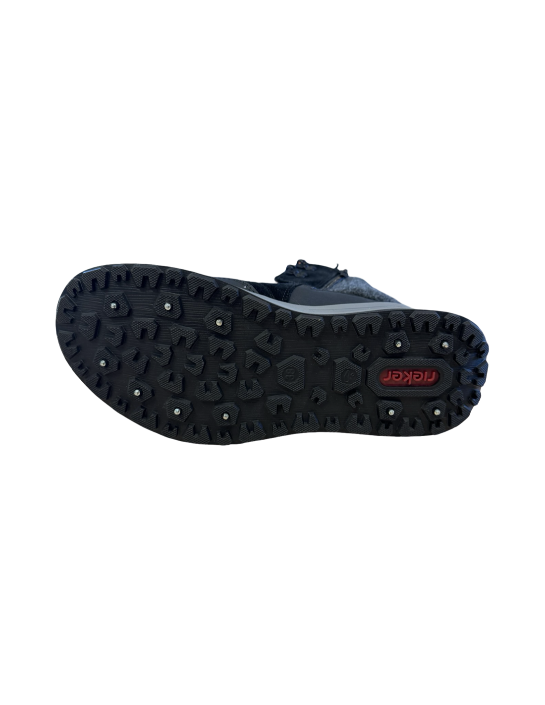 Riekers dubbade skormed 11 fasta dubbar, ger grepp i hala förhållanden och komfort hela dagen! Ovandel i textil och syntet med ett vattenavvisande RiekerTex membran som skyddar mot fukt. Den mjuka och varmfodrade innersulan är löstagbar för ev. egna fotbäddar. Snörningen ger en större möjlighet till anpassning efter foten och dragkedjan på insidan gör dem enkla att ta av och på. I storlek 37 är skafthöjden ca 10cm och skaftets omkrets ca. 33,5cm. Skon är normal i storlek och passar en normalbred fot. Vill man ha mera luft runt foten för extra sock bör man gå upp en storlek. Tänk på att måtten är riktlinjer och kan diffa någon millimeter.